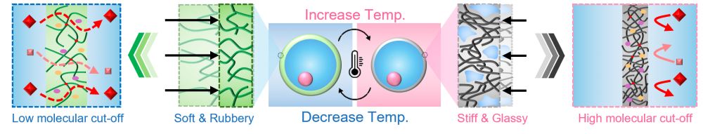 Thermoresponsive hydrogel microcapsules have received considerable attention as controlled release systems due to their tunable molecular permeability. However, conventional microcapsules based on swelling/deswelling transition often suffer from poor mechanical properties as well as limited range of molecular cut-off tunability, restricting their practical use. In this work, thermal phase separation in hydrogel microcapsules is introduced to achieve mechanical toughening as well as broad range of control over molecular permeability. By using poly(acrylic acid) (PAAc) hydrogels ionically crosslinked with calcium/acetate ions as the microcapsule shell, a polymer dense state can be induced upon heating above the transition temperature. Compression tests and dye permeation studies demonstrate a significant increase in modulus as well as substantial reduction in molecular cut-off threshold upon phase separation. Moreover, it is demonstrated that the release profile of the encapsulated substances can be programmed by adjusting the duration of thermal exposure, which governs the recovery kinetics of the hydrogel network. The showcased phase separation-induced strategy enables unprecedented control of the molecular permeability and significant enhancement in mechanical properties of the hydrogel microcapsules, offering a new avenue in the design of advanced stimuli-responsive microcapsules.