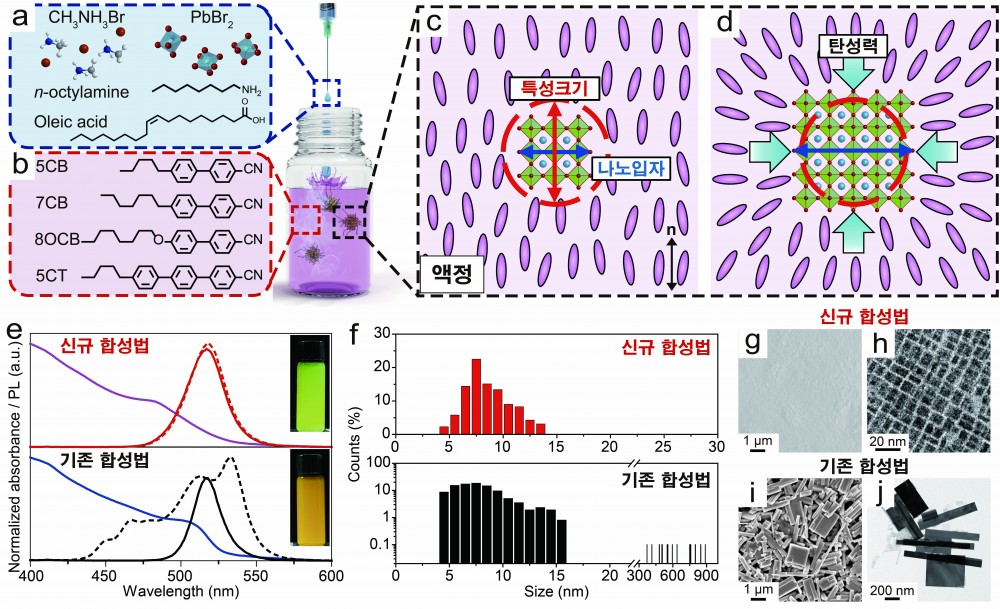 Perovskite nanocrystals (PNCs) are promising active materials because of their outstanding optoelectronic properties, which are finely tunable via size and shape. However, previous synthetic methods such as hot-injection and ligand-assisted reprecipitation require a high synthesis temperature or provide limited access to homogeneous PNCs, leading to the present lack of commercial value and real-world applications of PNCs. Here, we report a room-temperature approach to synthesize PNCs within a liquid crystalline antisolvent, enabling access to PNCs with a precisely defined size and shape and with reduced surface defects. We demonstrate that elastic strains and long-range molecular ordering of the liquid crystals play a key role in not only regulating the growth of PNCs but also promoting high surface passivation of PNCs with ligands. The approach is a simple, rapid, and room-temperature process, yet it enables access to highly homogeneous PNCs on a mass scale with substantially reduced surface defect states leading to significantly enhanced optoelectronic features. Our results provide a versatile and generalizable strategy to be broadly compatible with a range of nanomaterials and other synthetic methods such as ligand exchange and microfluidic processes.