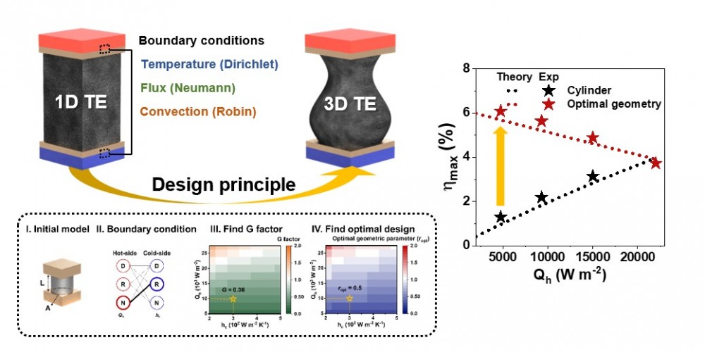 Thermoelectric power generation, which converts waste heat into electricity, represents a promising approach toward sustainable energy harvesting. While geometric regulation of thermoelectric materials has shown significant potential for enhancing device performance, existing theoretical and computational approaches typically rely on simplified, case-specific designs under constrained conditions. This limitation primarily stems from theoretical challenges in comprehensively understanding thermoelectric transport in three-dimensional (3D) materials under varied thermal environments. Here, we develop an analytical theoretical framework to rigorously examines power generation in 3D thermoelectric materials across diverse thermal boundary conditions. Based on this framework, we propose a universal geometric design principle to optimize 3D materials for maximum power generation and introduce a universal figure of merit that comprehensively integrates material properties, geometry, and boundary conditions. Experimental validation using optimized 3D-printed (Bi, Sb)2Te3 legs demonstrates significant enhancements in performance. This study establishes a robust theoretical foundation and practical design strategy, advancing thermoelectric energy harvesting beyond traditional material-property-based optimizations.