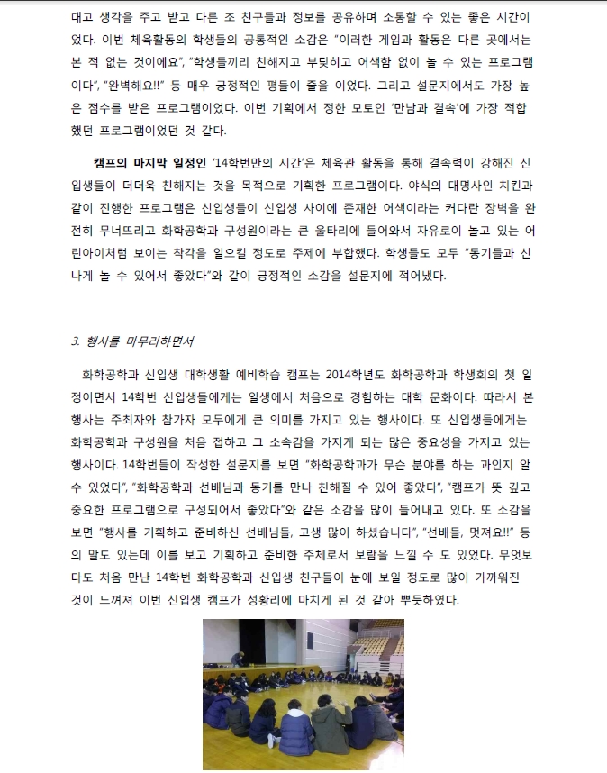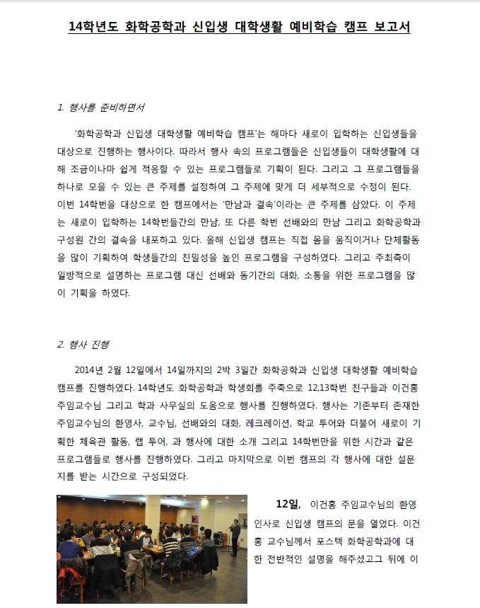 2014년 새내기들과 함깨하는 대학생활 예비학습 보고서