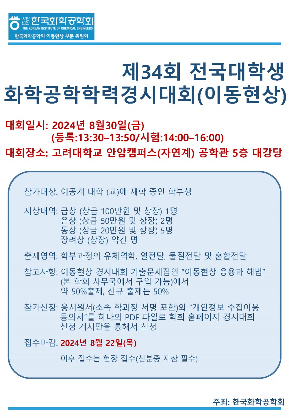 1. 대회일시: 2024년 8월 30일(금) (등록: 13:30~13:50/시험: 14:00~16:00)