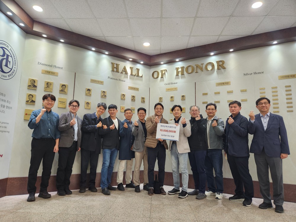 화학공학과 90학번 학사동문들께서 학과 발전기금으로 1천만원을 기부하였습니다. 2025년 3월 21일(금요일) 화학공학과에서 발전기금 전달식이 진행되었으며,