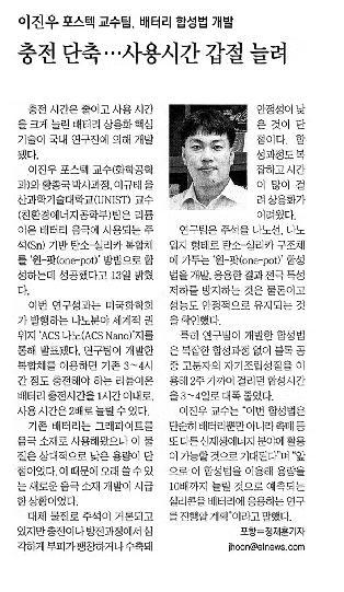이진우 포스텍 교수팀, 배터리합성법 개발