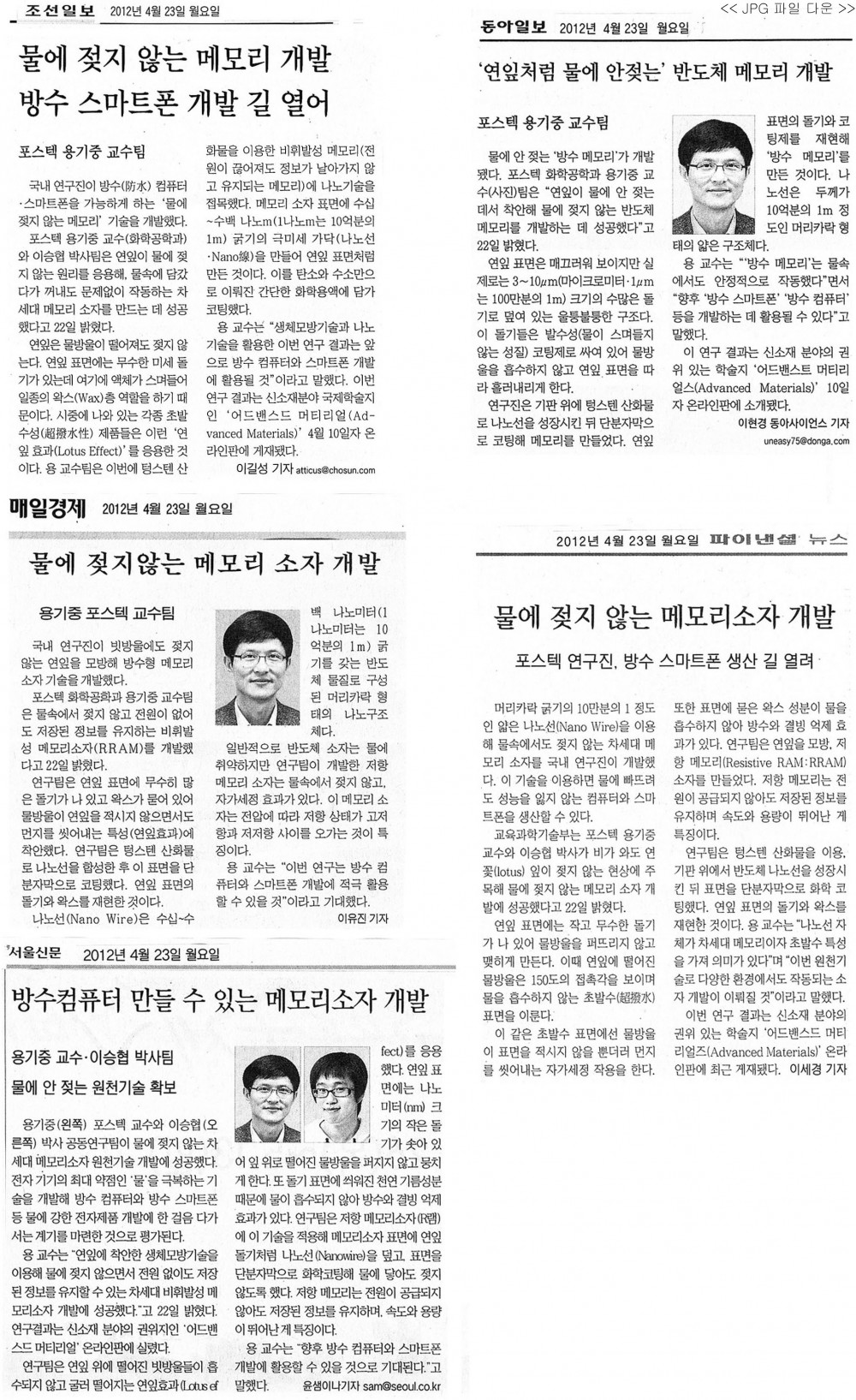 포스텍 용기중 교수팀 ‘연잎처럼 물에 안젖는’ 반도체 메모리 개발