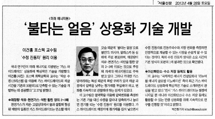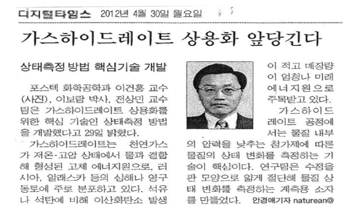 가스하이드레이트 상용화 앞당긴다 - 이건홍교수, 전상민교수