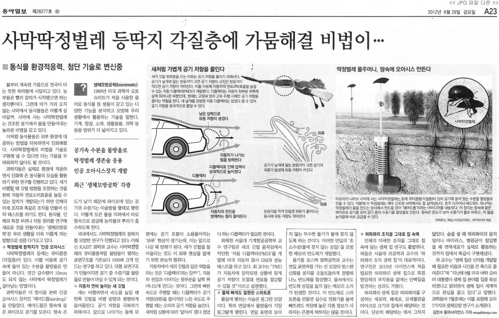‘초소수성(물에 젖지 않는 성질)’을 모방한 메모리 반도체가 개발됐다.