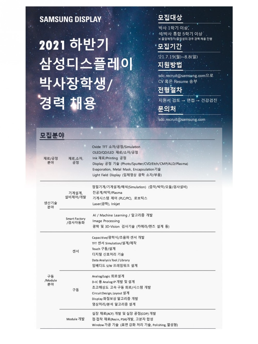 [ 2021년 하반기 삼성디스플레이 박사장학생/경력 선발 안내 ]