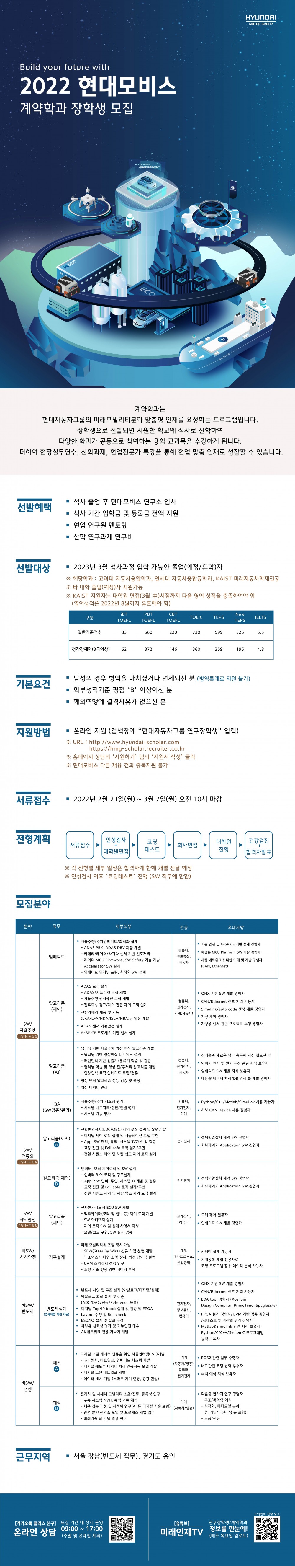 22년(상) 현대모비스 계약학과 모집 (02.21(월) ~ 03.07(월) 10:00까지)