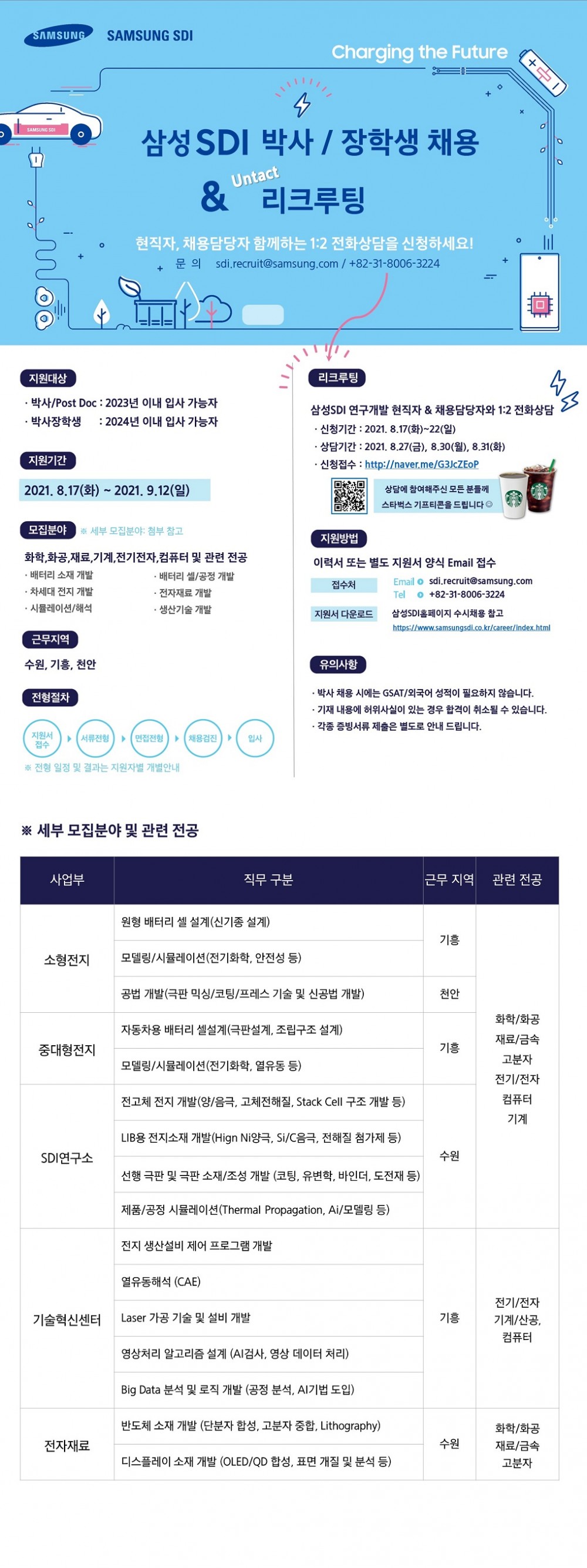 [삼성SDI] 박사 및 장학생 채용 리크루팅