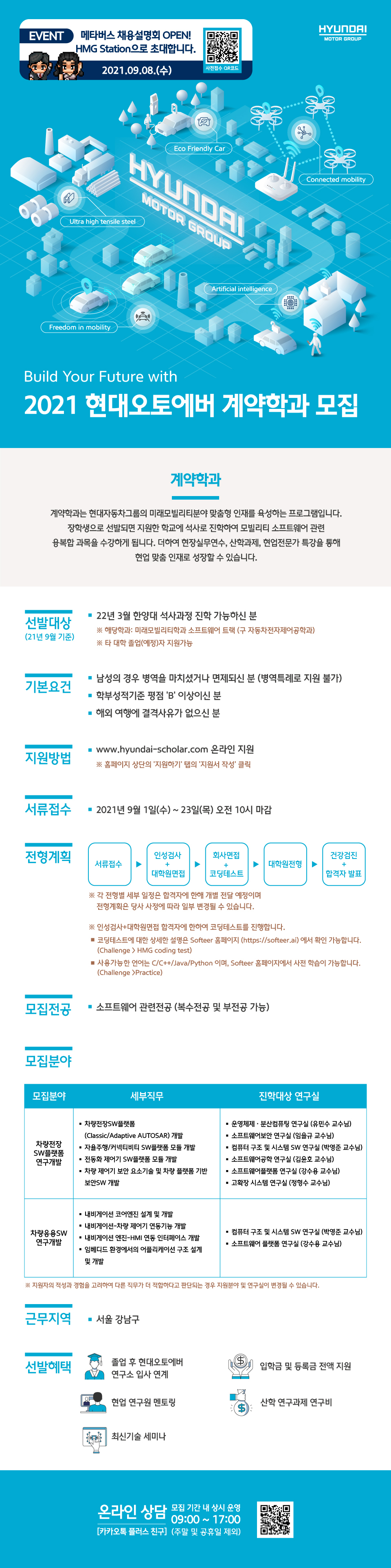 계약학과는 현대자동차그룹의 미래모빌리티분야 맞춤형 인재를 육성하는 프로그램입니다.