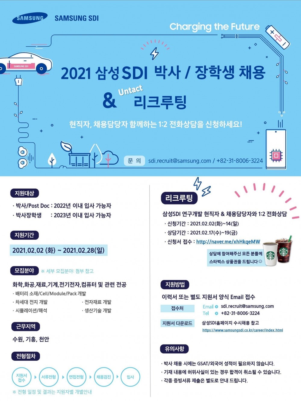 [삼성SDI] 박사 및 장학생 채용공고(~2/28)