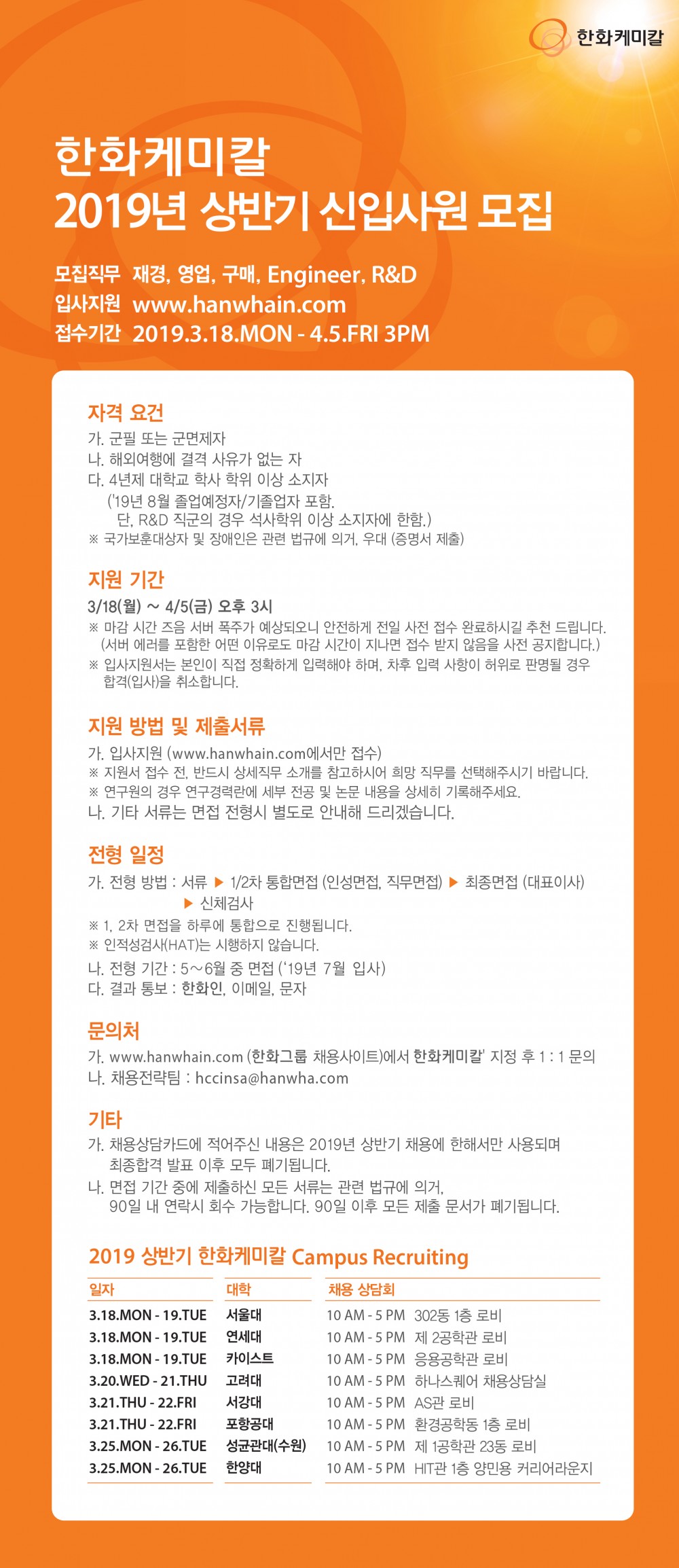 [한화케미칼] 2019년 상반기 신입사원 모집 및 리쿠르팅 안내