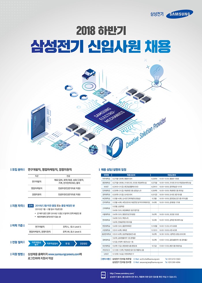 # 삼성전기 2018 하반기 채용상담/설명회 일정