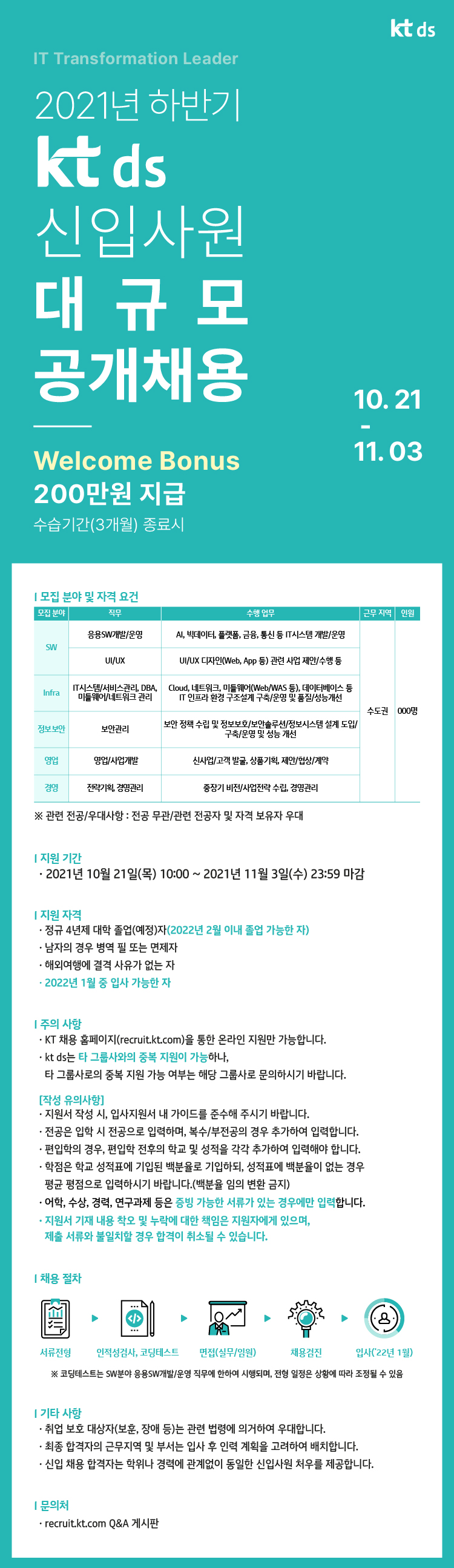 ▪ KT 채용 홈페이지(https://recruit.kt.com)을 통한 온라인 지원만 가능합니다.