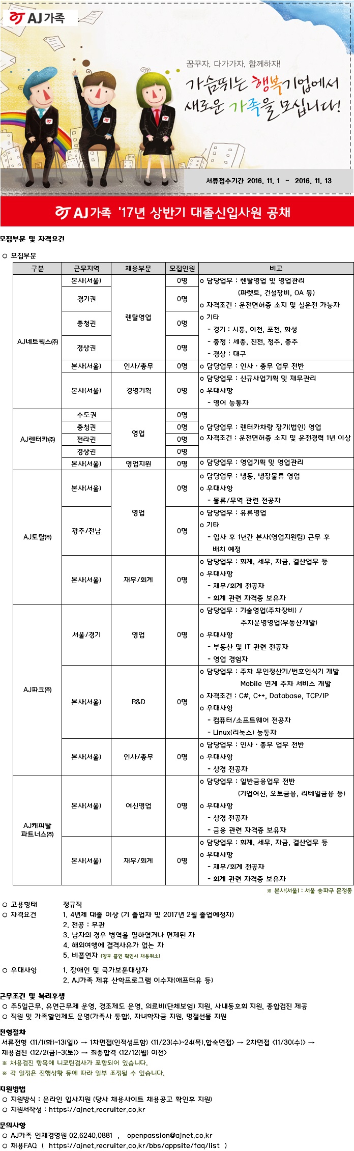 2017년 상반기 AJ가족 대졸신입 공개채용 안내