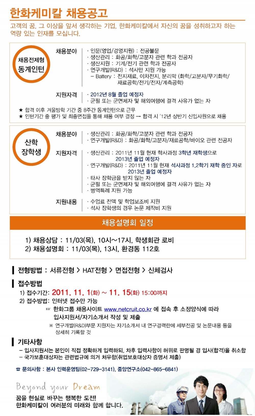 [한화케미칼] 동계인턴 및 산학장학생 채용홍보