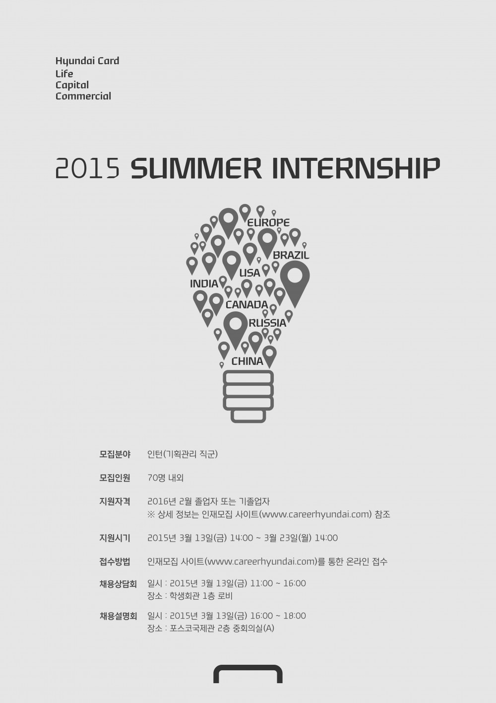 2015 Summer Internship 채용전형 및 귀교 캠퍼스 리크루팅에 많은 참여 부탁 드립니다.