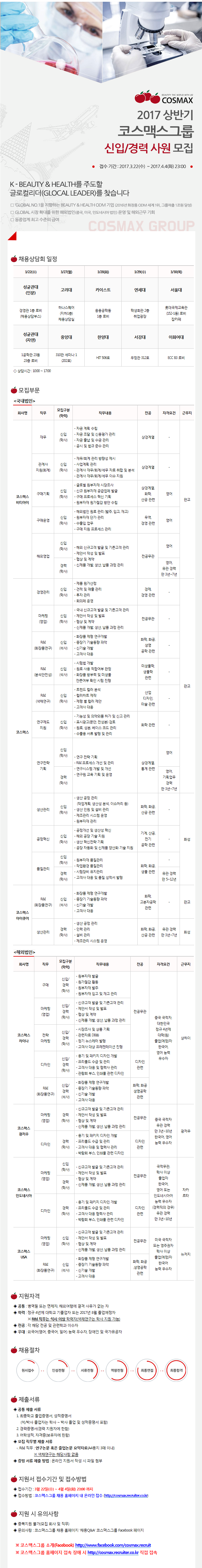 [코스맥스그룹] 2017상반기 코스맥스그룹 신입/경력 사원 모집