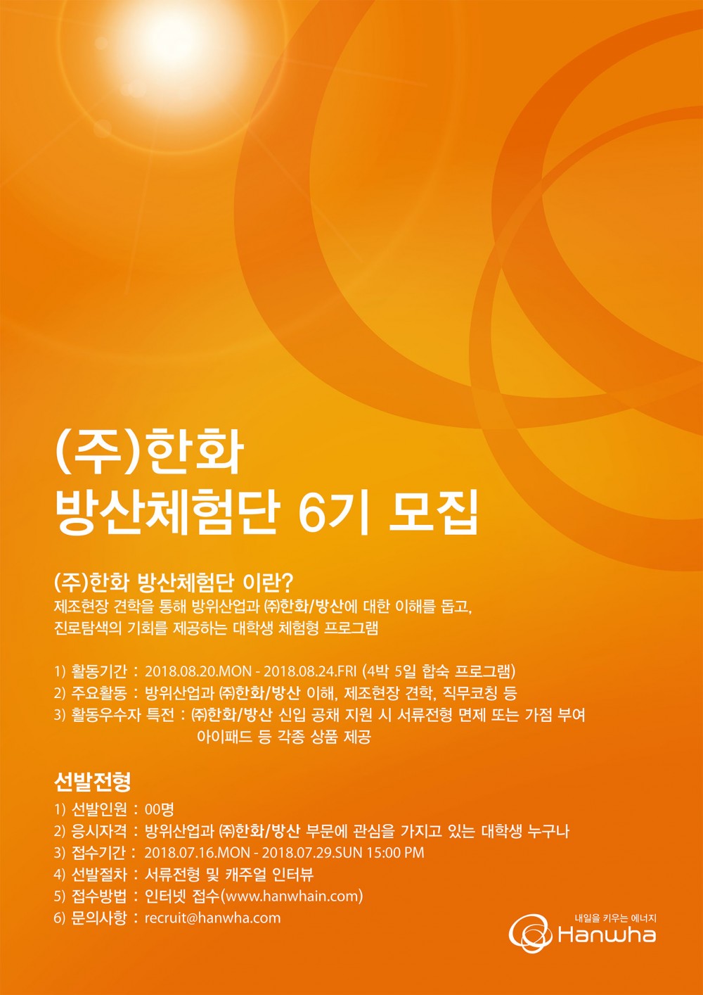[한화방산] 방산체험단 6기 모집(~7/29)