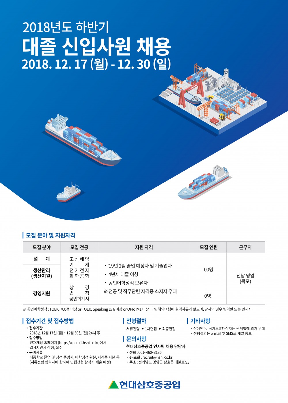 현대삼호중공업 2018년 하반기 대졸 신입사원 채용 안내