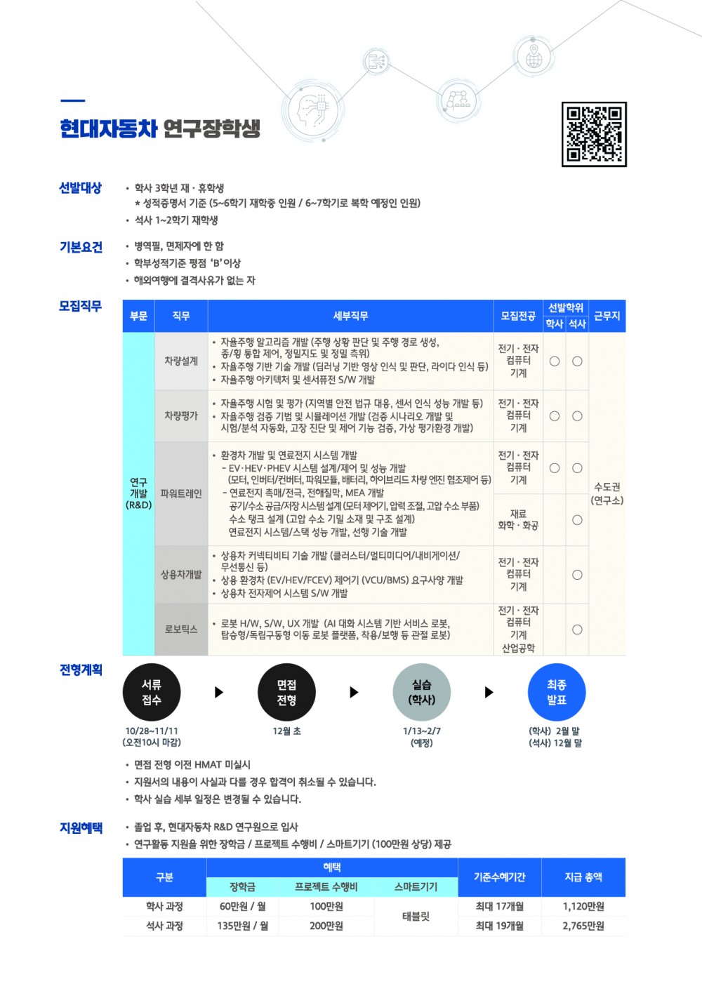 [현대자동차] 2019 하반기 연구장학생 모집 런치 채용설명회(10.31/목)