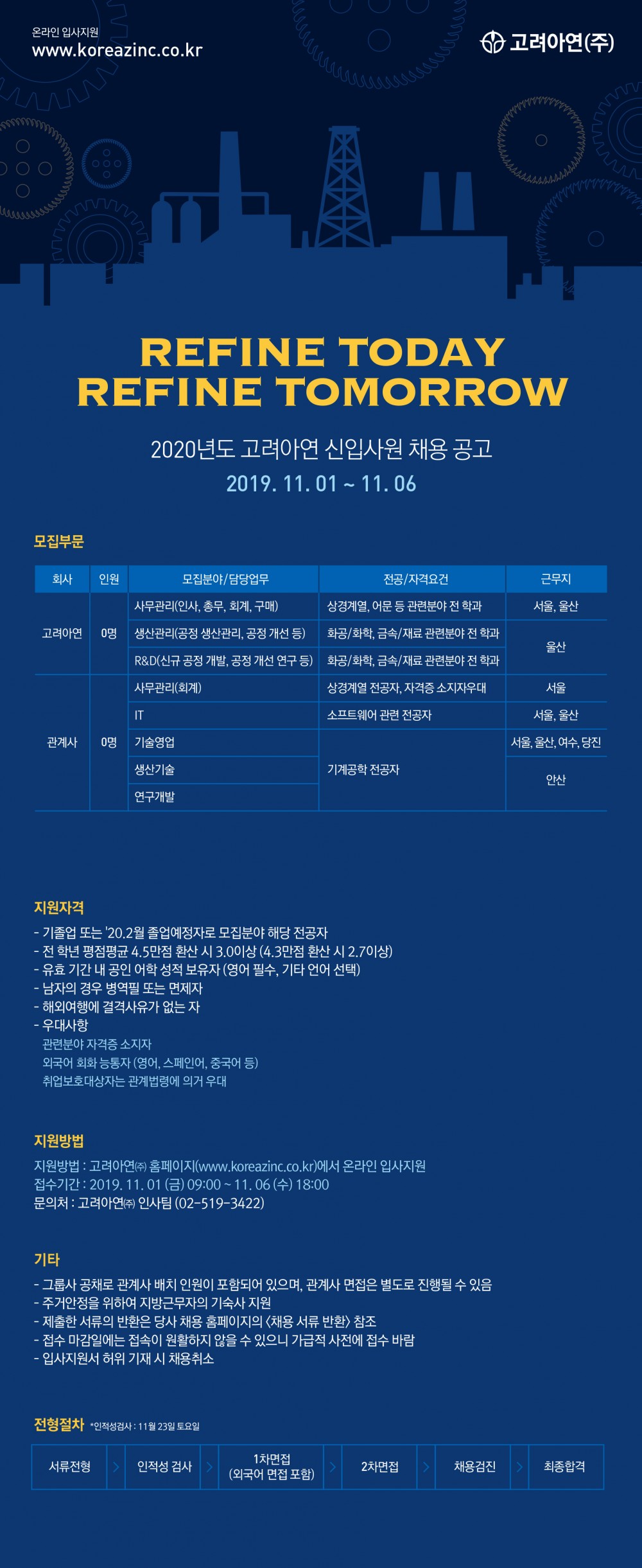 [고려아연] 2020년도 고려아연 신입사원 채용 안내(~11/06)