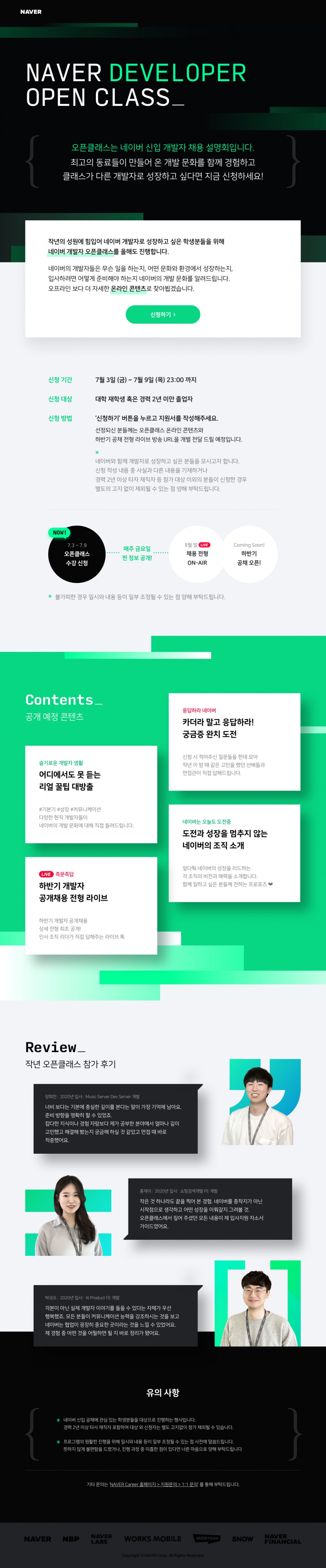 작년의 성원에 힘입어 네이버 개발자로 성장하고 싶은 학생분들을 위해 네이버 개발자 오픈클래스를 올해도 진행합니다.