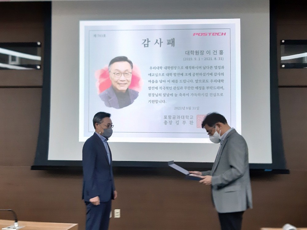 이건홍 교수님께서 대학원장 임기(2019.09.01~2021.08.31, 2년)를 마치고 학과로 복귀하셨습니다.