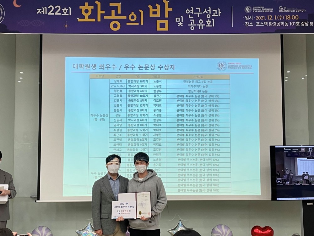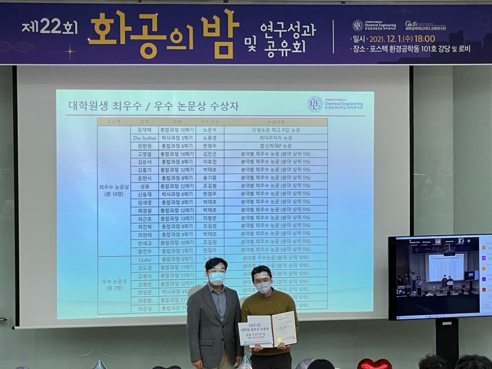 화공온라인콘테스트, 대학원 우수논문상, 우수특허상, 우수기술이전상, 학부논문상 등 각 시상부문 대표자와 학부생은 현장에 참석하였으며,